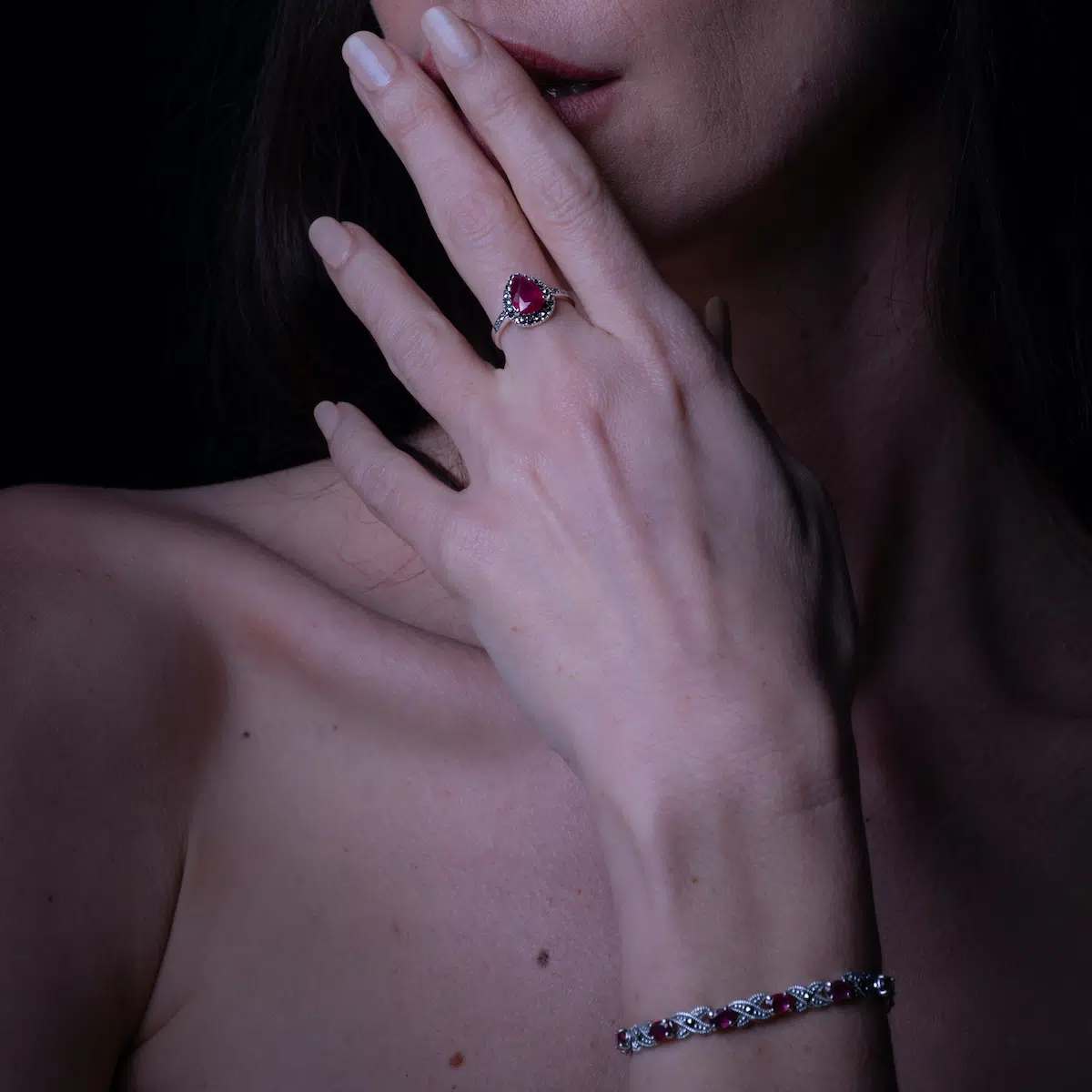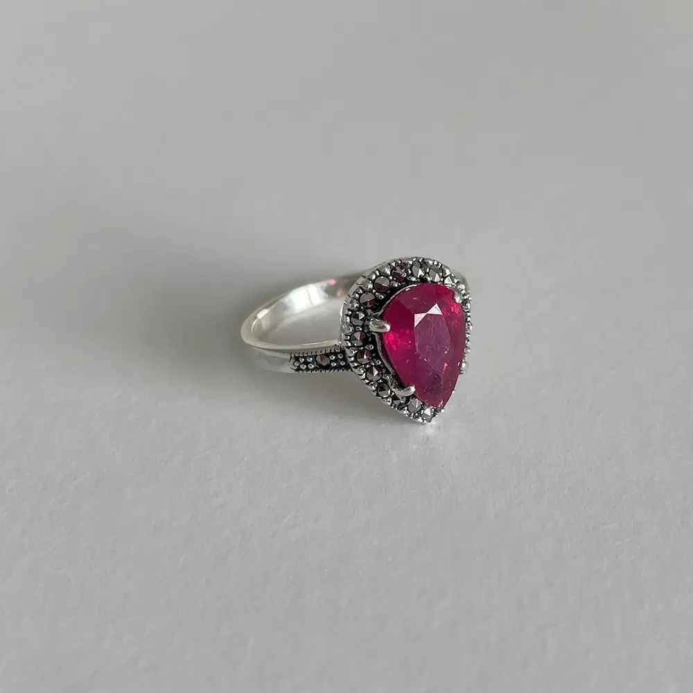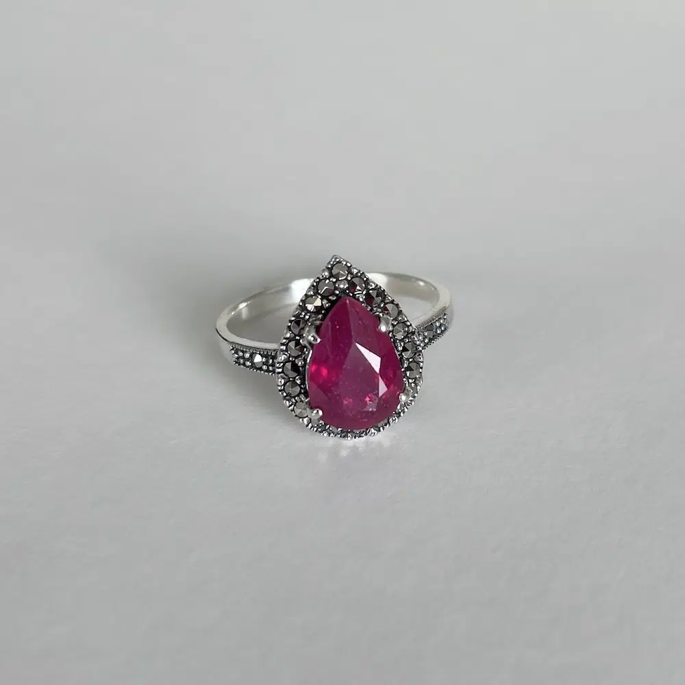 Comment porter la bague en argent ornée de rubis et marcassites ?