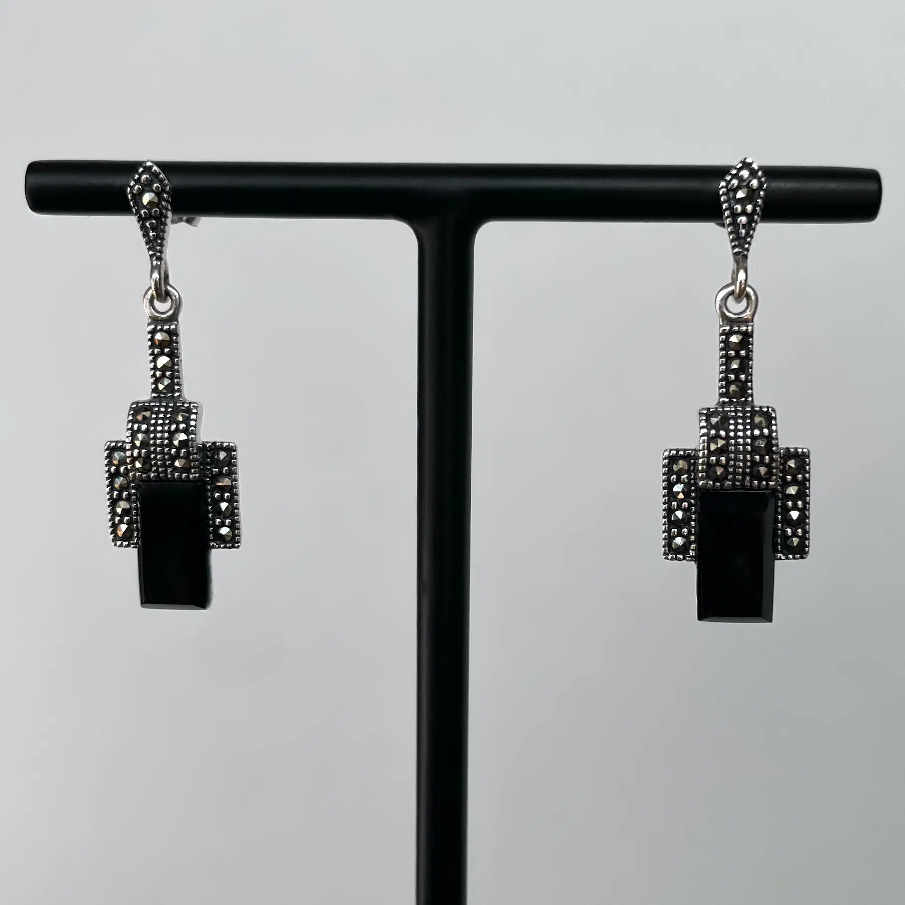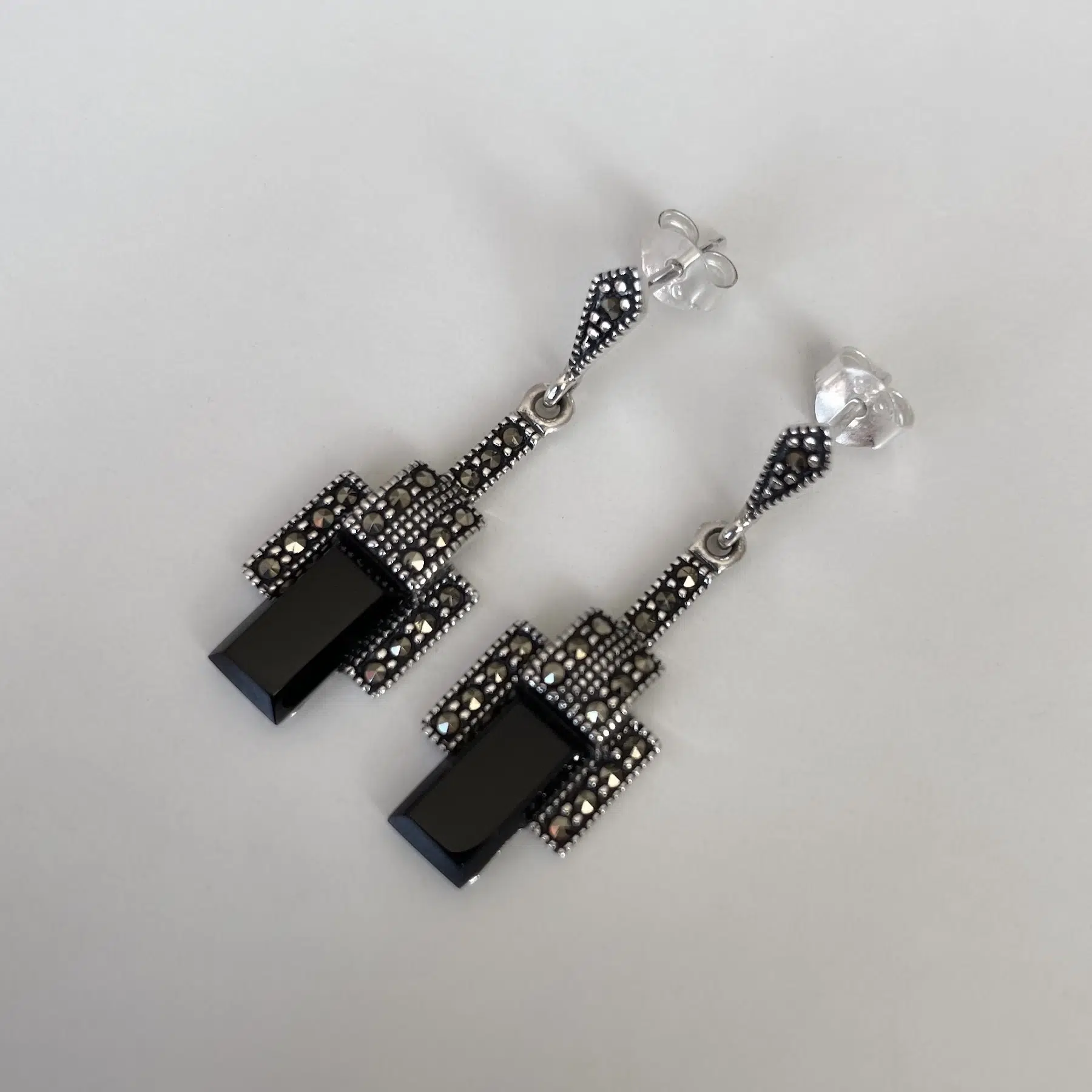 Boucles d'oreilles art déco en argent et marcassites
