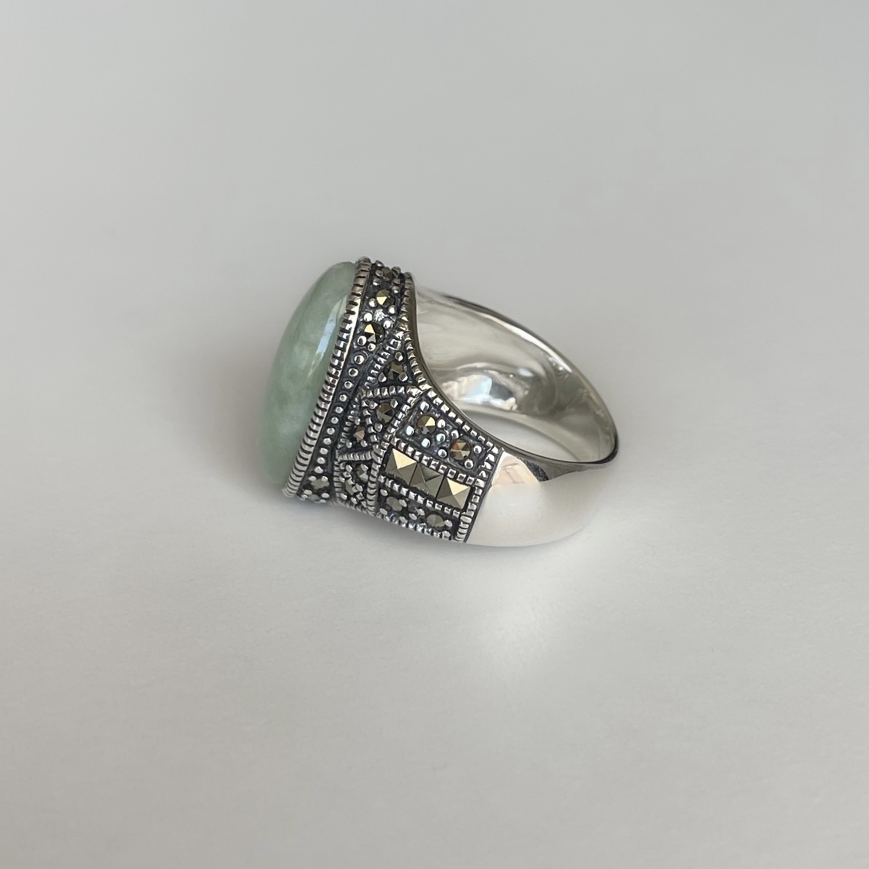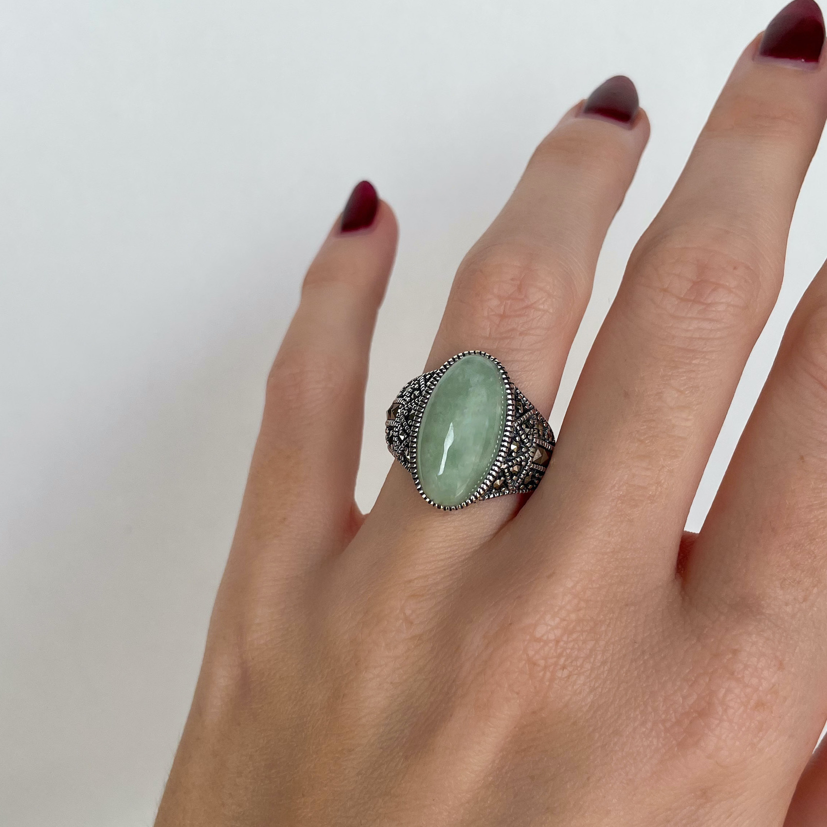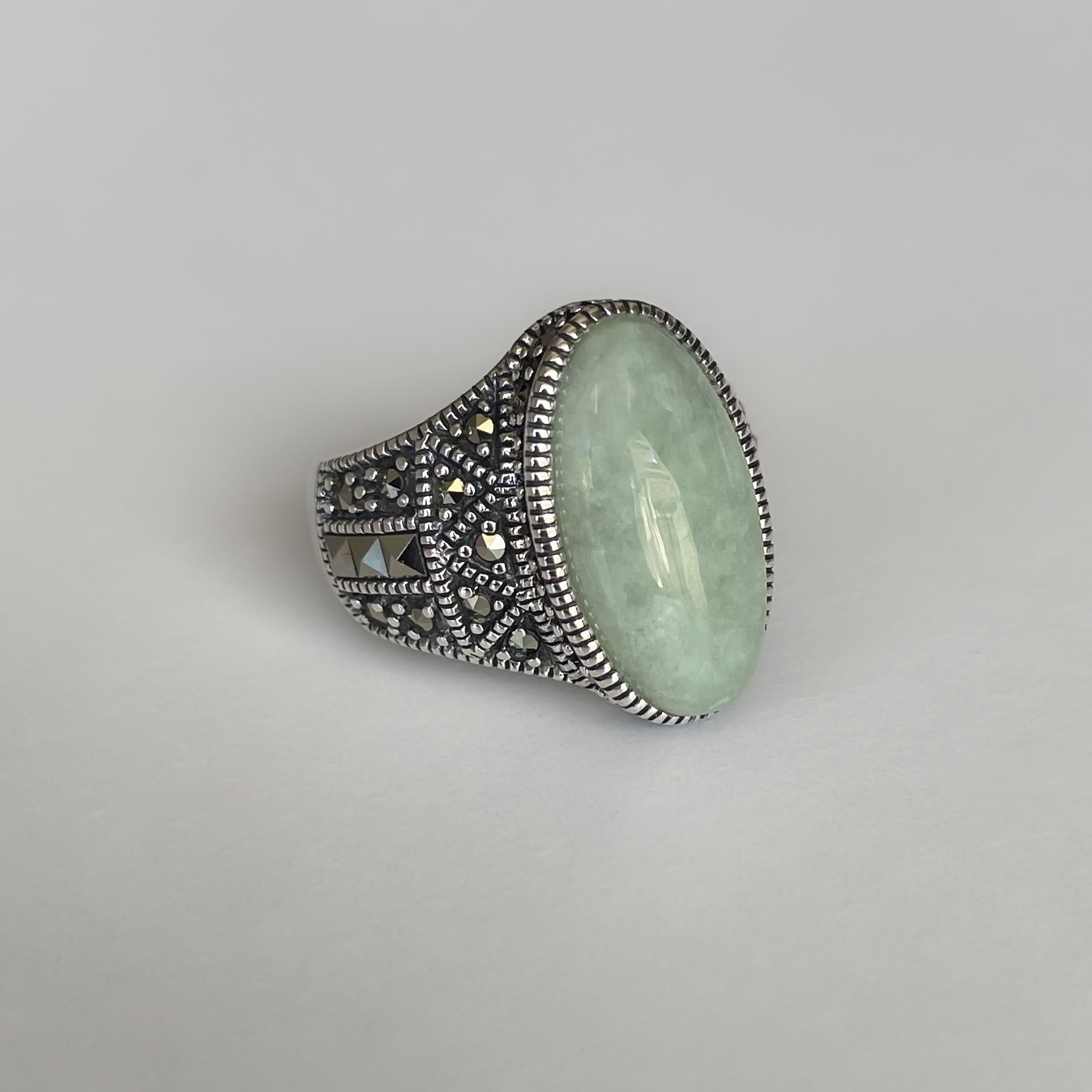 Découvrez la bague jade verte Antea créée en argent massif. Il s’agit d’un modèle raffiné qui allie la profondeur du jade à l’éclat subtil des marcassites. Chaque pierre de jade et soigneusement sélectionnée pour sa couleur intense et sa qualité, offrant un rendu naturel et lumineux. Le jade vert est reconnu pour ses vertus apaisantes et équilibrantes, favorisant la sérénité et l’harmonie intérieure. Cette bague en argent sterling est parfaite pour ajouter une touche distinctive à votre style tout en bénéficiant des propriétés bienfaisantes du jade. Elle est idéale à porter au quotidien ou pour compléter vos tenues avec caractère.