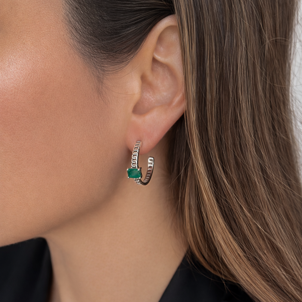 Créoles argent – agate – modèle Pandore